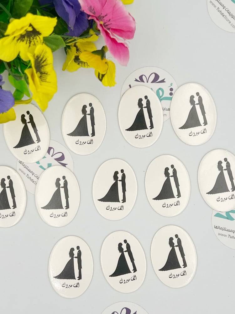 ثيمات ورقيه بتصميم عرسان وعبارة الف مبروك