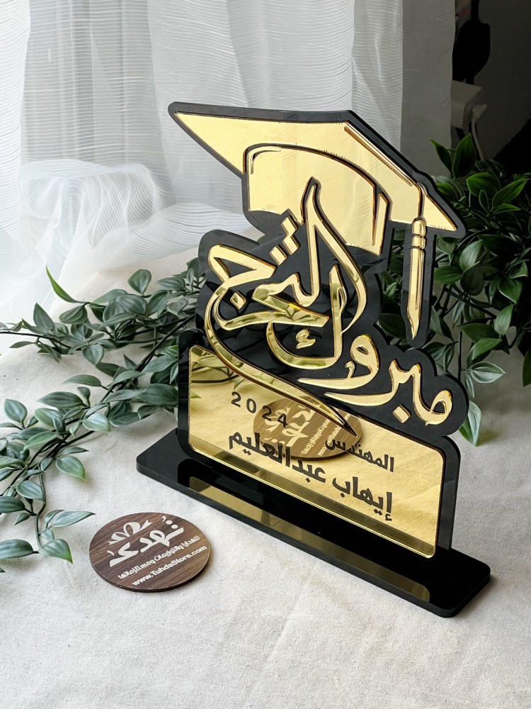 درع مبروك التخرج اكريلك ذهبي واسود فخم