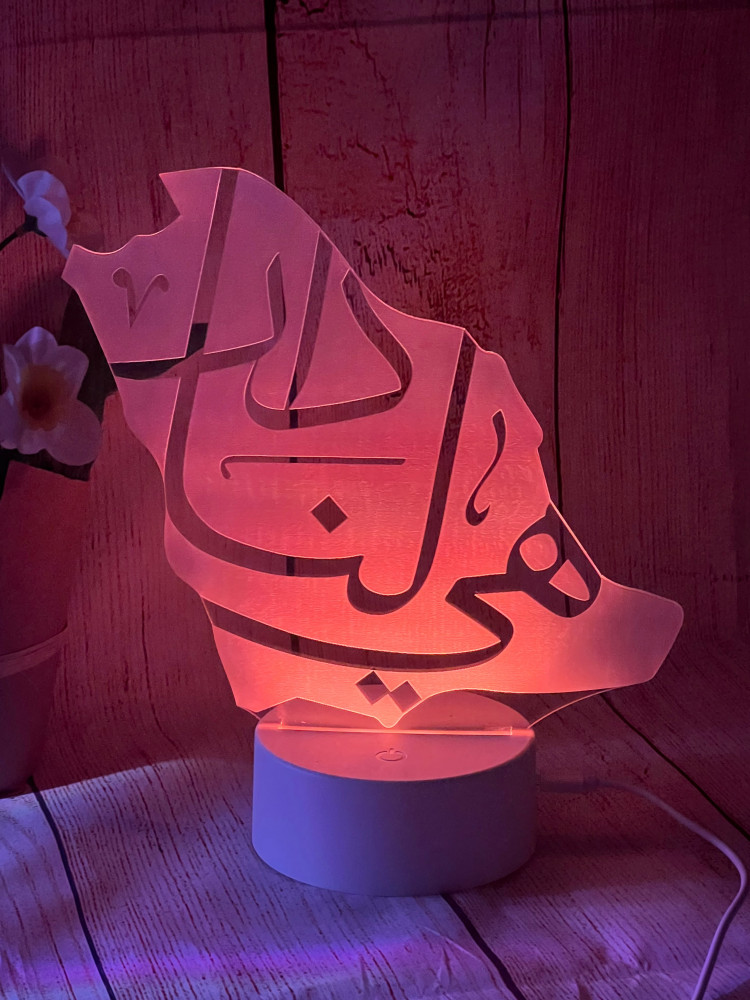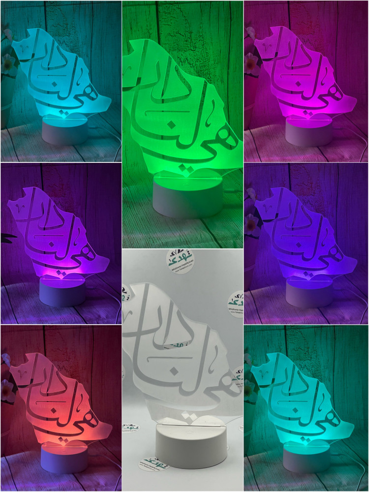 قاعدة مضيئة بحفر شعار ( هي لنا دار )