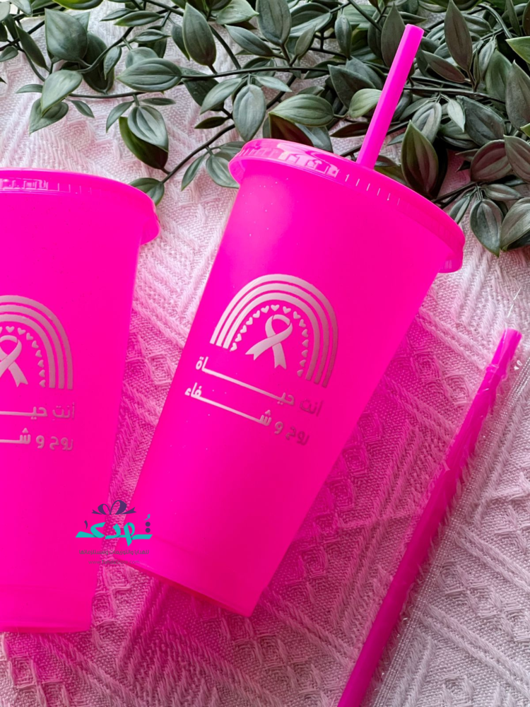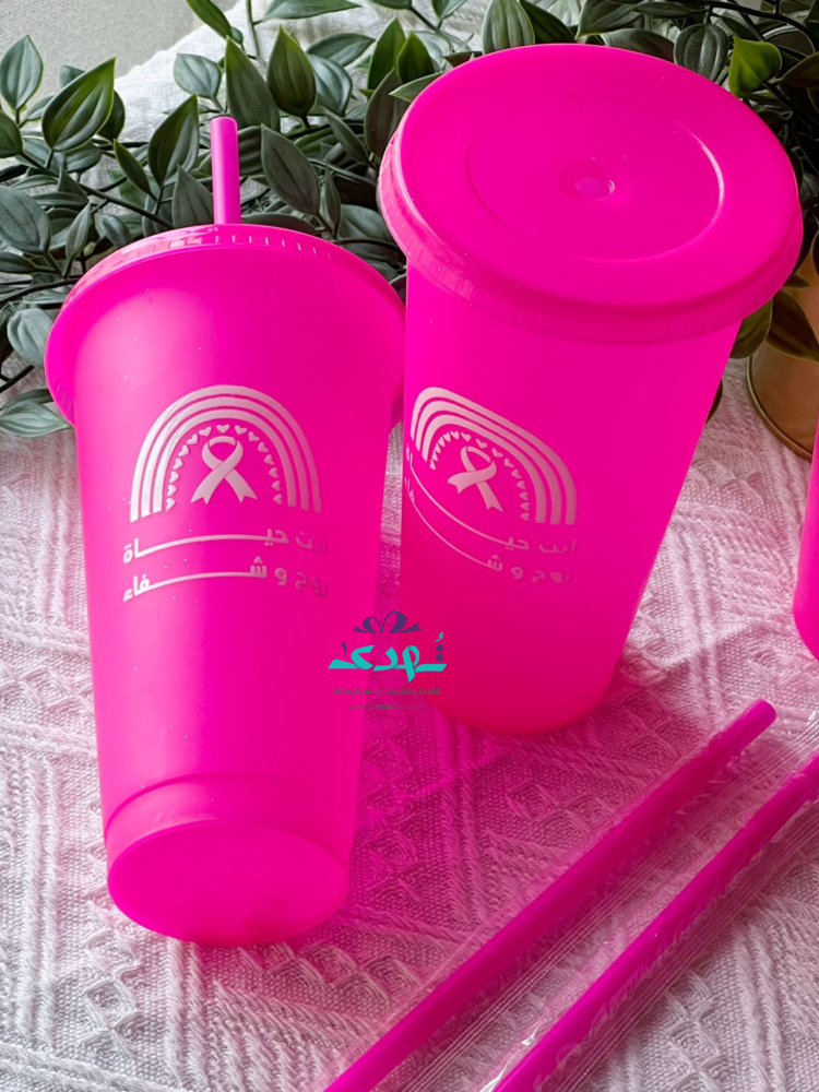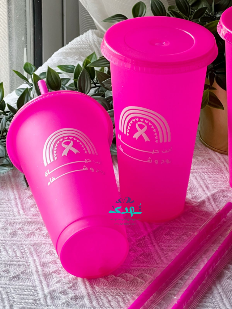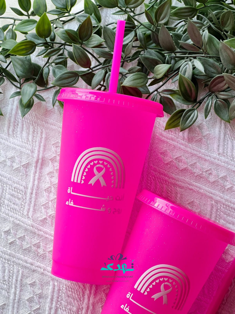 باللون الوردي مع طباعى تصميم و شعار سرطان الثدي