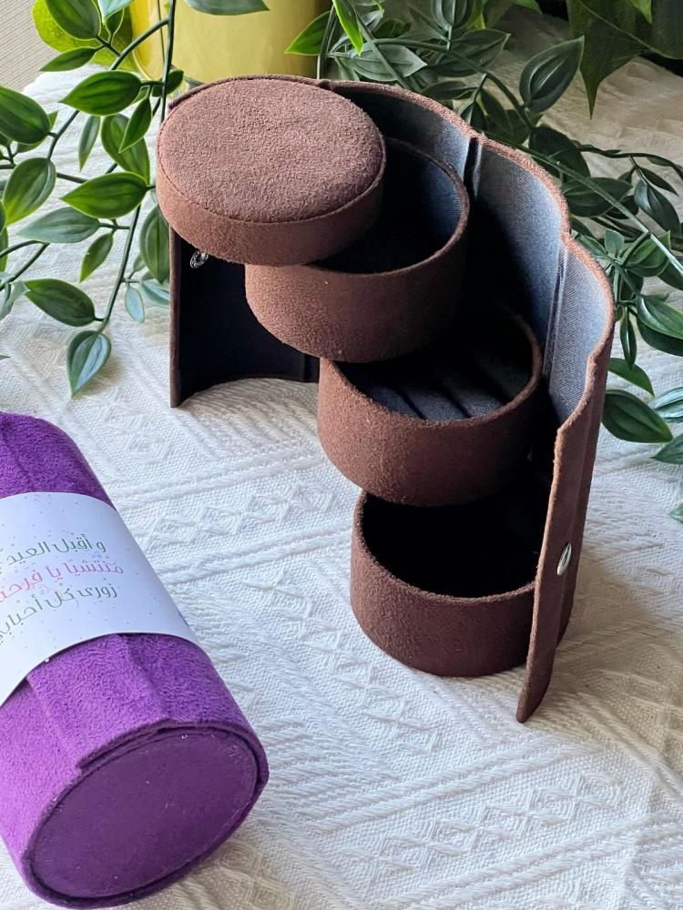 منظم اكسسوارات مخمل اسطواني الشكل و يتكون من 3 ادوار