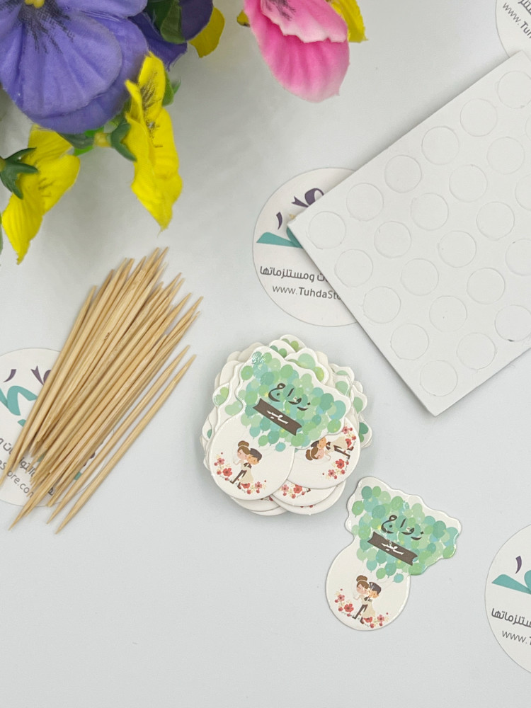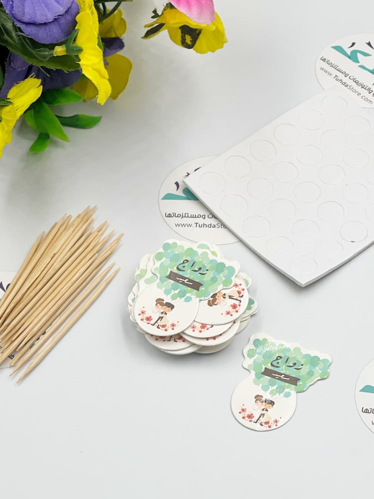 يحتوي المغلف على الثيمات وايضا اعواد خشب و واشي تيب